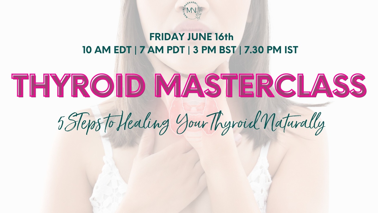 This one-of-a-kind masterclass will teach you : how your thyroid works, how to identify foods that are harmful to your thyroid plus you also get my Signature 5-Step plan for healing your Thyroid Naturally.
